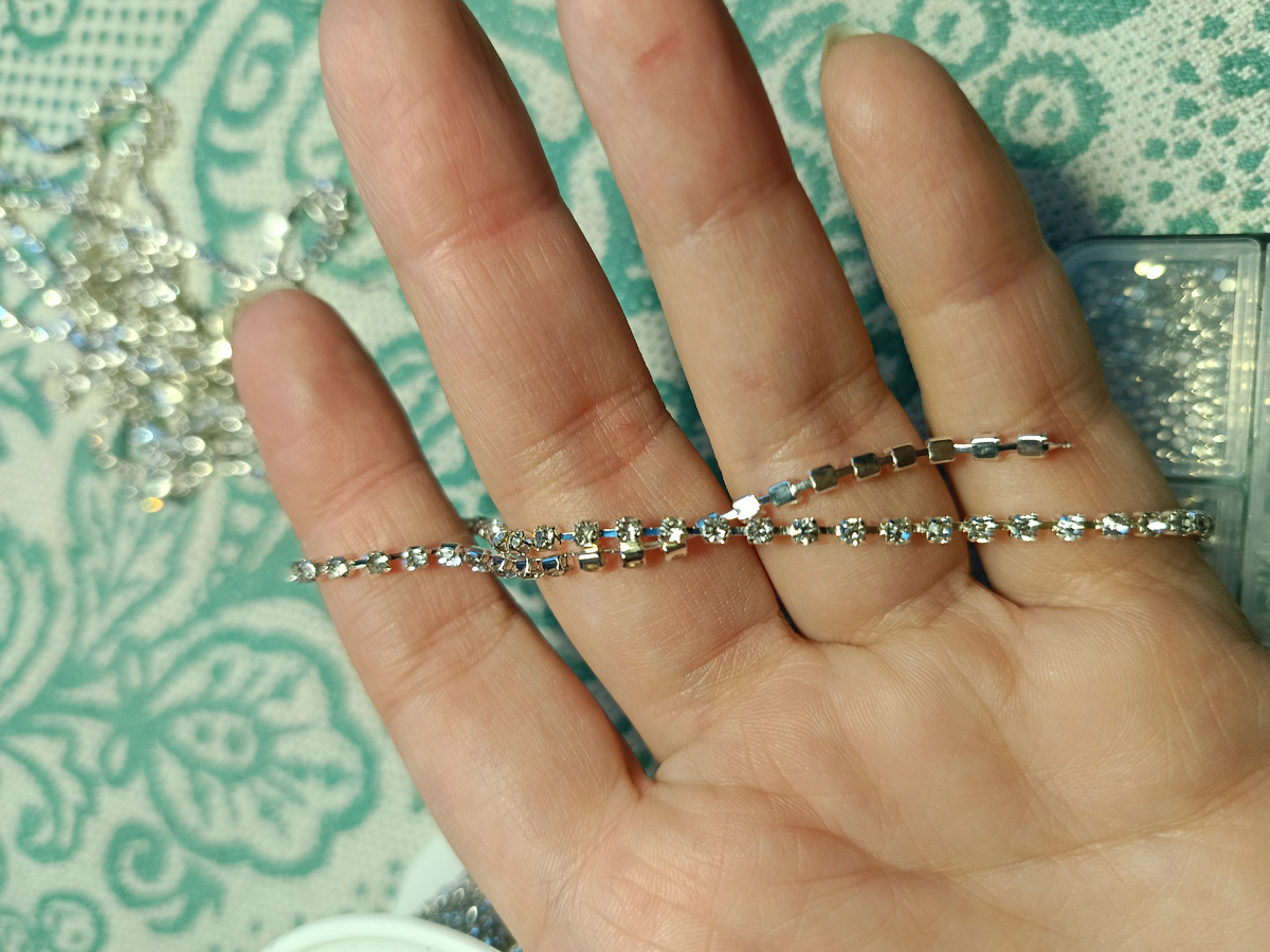 Для образа девушек традиционно использую стразовые цепочки и стразы для маникюра. Для Одиллии более жесткая, грубая цепочка. Для Одетты более мягкая, округлая. Также необходимо кружево разной ширины и декора. Перья для белого костюма - округлые, пушистые, нежные (взяла с тела под крыльями - там они наиболее пушистые), для чёрного - длинные, узкие, острые (судя по форме - хвостовые). Пачки декорировала широким кружевом, затем пришила перья и приклеила стразы. Верх декорировала элементами кружева, а потом стразами и пером. "Крылья" сзади маскируют застёжки. Для завершения образа мне осталось всего ничего: черные пуанты, украшения на голову и макияж Одиллии. Одетта будет с заводским мейком - он легкий и нежный, как раз подходит образу.