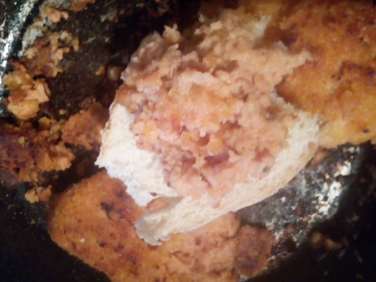 Наверно, Вы любите бутерброд с красной икрой? И с красной рыбой? Но, дорого? По праздникам... Возрадуйтессь! Я научу вас бутерброду на каждый день. :0)) Что для этого надо? Само собой - хлебушек. Рекомендую - самый дешевый. Там - как хотите, конечно... Но - Господь терпел, и нам - не зазорно. :0)) Пища должна быть грубой! Э... Я хотел сказать - "мужественной"... Хм... Замнём для ясности... Итак! Покупем заморозку - типа котлетки (треугольники) из лосося и готовим. Хоть на пару, хоть на сковородке... У меня после жарки гузок индеек ( статья в плане) осталась сковородка с жирком... Не пропадать добру? вот, берем часть (!) котрлетки (треугольника в данном случае) и размазываем по ломтику хлеба. Толщину ломтика - по вкусу... Вот такая замена красной икре... А чего? :0)))) Категорически рекомендую! Ну, конечно... Хлебушек можно и поджарить. Но это не обязательно.