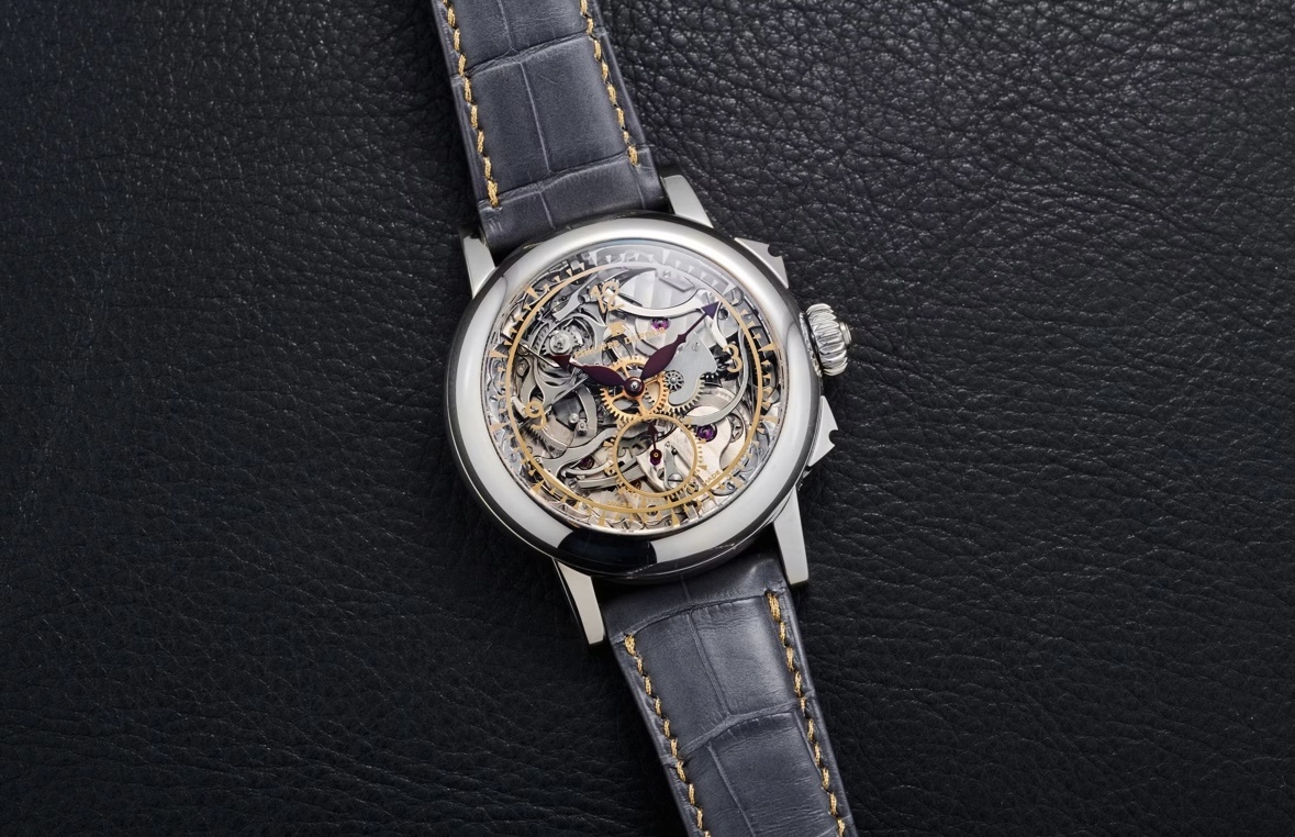 Впервые выставленные на аукционе часы являются седьмым экземпляром из серии Grande & Petite Sonnerie. Это уникальное изделие с сапфировым циферблатом, которых в линейке всего 3. Стартовая цена модели — 2 млн долларов, но в итоге она ушла с молотка почти вдвое дороже — за 3,69 млн долларов. Часы Philippe Dufour имеют корпус из белого золота с диаметром 41 мм. Стрелки выполнены в бордовом цвете, разметка — в золотистом. В одном направлении заводная головка заводит базовый механизм, в другом – снабжает энергией механизм боя. На правой стороне корпуса находятся кнопки для переключения режимов боя «Silent/Sound» и «Grand/Petite».