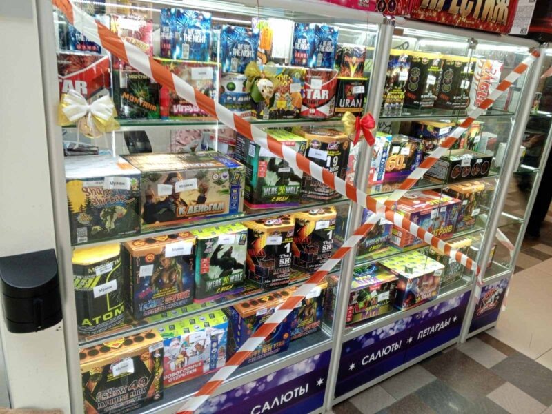 Постановление, подписанное премьер-министром Романом Головченко, запрещает оптовую и розничную торговлю пиротехническими изделиями в Беларуси. Оно вступило в силу в субботу, 4 января. Однако выполняется ли на практике? Корреспондент агентства «Минск-Новости» отправился в один из крупных торговых центров, расположенных на столичном проспекте Победителей. Отметим, что запрет не распространяется на реализацию пиротехнических товаров юрлицами, имеющими разрешения или свидетельства на право продажи пиротехнических изделий технического назначения IV и V классов опасности, юрлицам, имеющим право на реализацию данных изделий, проведение фейерверков с использованием пиротехнических изделий технического назначения IV и V классов опасности. Также не запрещена оптовая и розничная торговля бенгальскими огнями, хлопушками, тортовыми свечами или фонтанами холодного огня. В одной из торговых точек первого этажа торгового центра пиротехнические изделия — фейерверки, салюты, ракетницы заклеены. Варианто