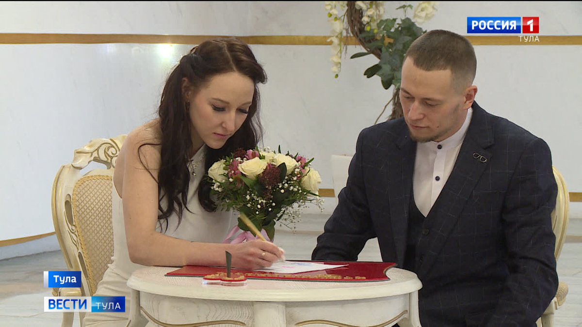 За два дня в Тульском ЗАГСе зарегистрировали свой брак 10 пар. В этом году в оружейной столице впервые появилась возможность сыграть свадьбу официально в новогодние праздники. Новый опыт оказался положительным, пары приходят заряженные, глядя на них и настроение поднимается, говорят сотрудники ЗАГСа. В следующем году роспись в праздничные дни планируется продолжить. Маргарита и Владимир Буренины: Волнение, естественно, немножко. Да, такое приятное волнение, но все-таки есть такое чуть-чуть прям слова иногда даже вот забываются. И новый год отпраздновали, и свадьбу сразу. Все устроили, все очень-очень хорошо, мило получилось, мы очень рады. В этом году в загсе продолжат другую традицию чествования пар, проживших вместе не один десяток лет. Для этого нужно прийти в отделение загса и подать заявку в выбранную дату будет проведено торжественное мероприятие. Парам, которые прожили в браке более 50 лет, вручается поздравительное письмо письмо губернатора Тульской области. Лариса Чугунова, на