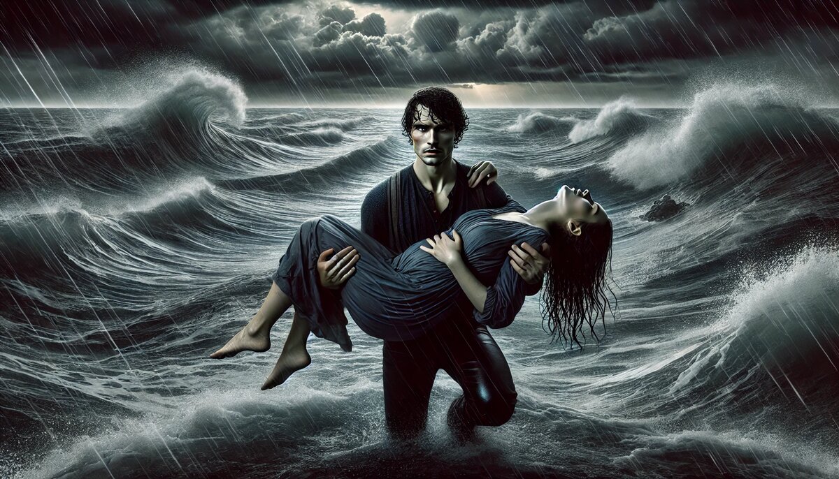 Добежав до берега, он увидел фигуру женщины, сидевшей в лодке. Она пыталась грести, но волны выбивали вёсла. Тут лодку накрыл мощный порыв ветра. Раздался женский крик, и лодка перевернулась, окатив несчастную водой. Денис без раздумий бросился к урезу воды, стягивая промокшую куртку. Течением утопающую несло вниз, и она то исчезала в волнах, то выплывала, захлёбываясь.
