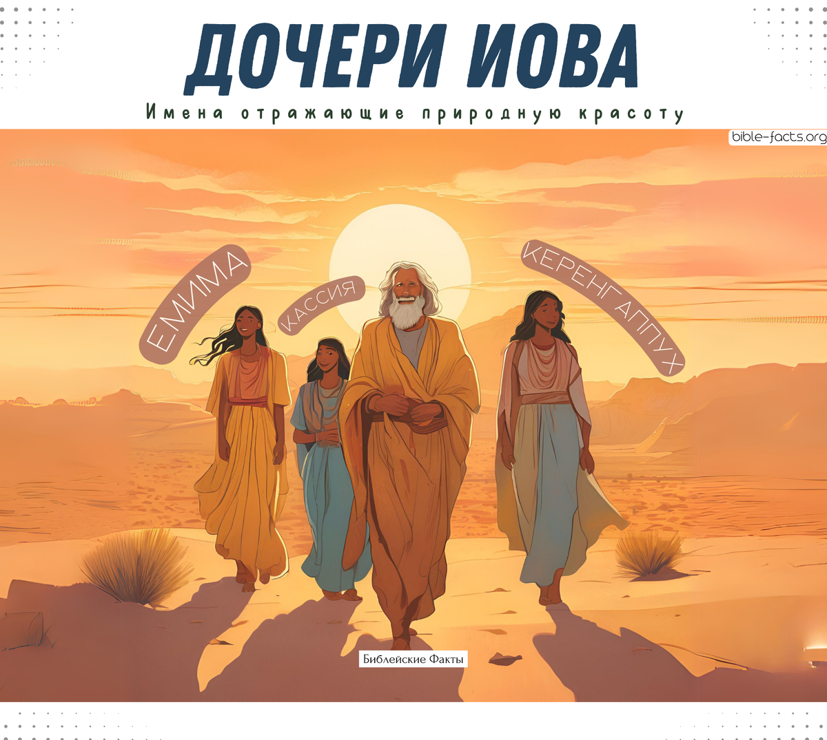 После страшных скорбей и многих страданий Иова, Бог подарил ему семь сыновей и трех дочерей. Это очень необычно, но в книге Иова только дочери Иова упоминаются по именам и в каждом имени отражалась природная красота: