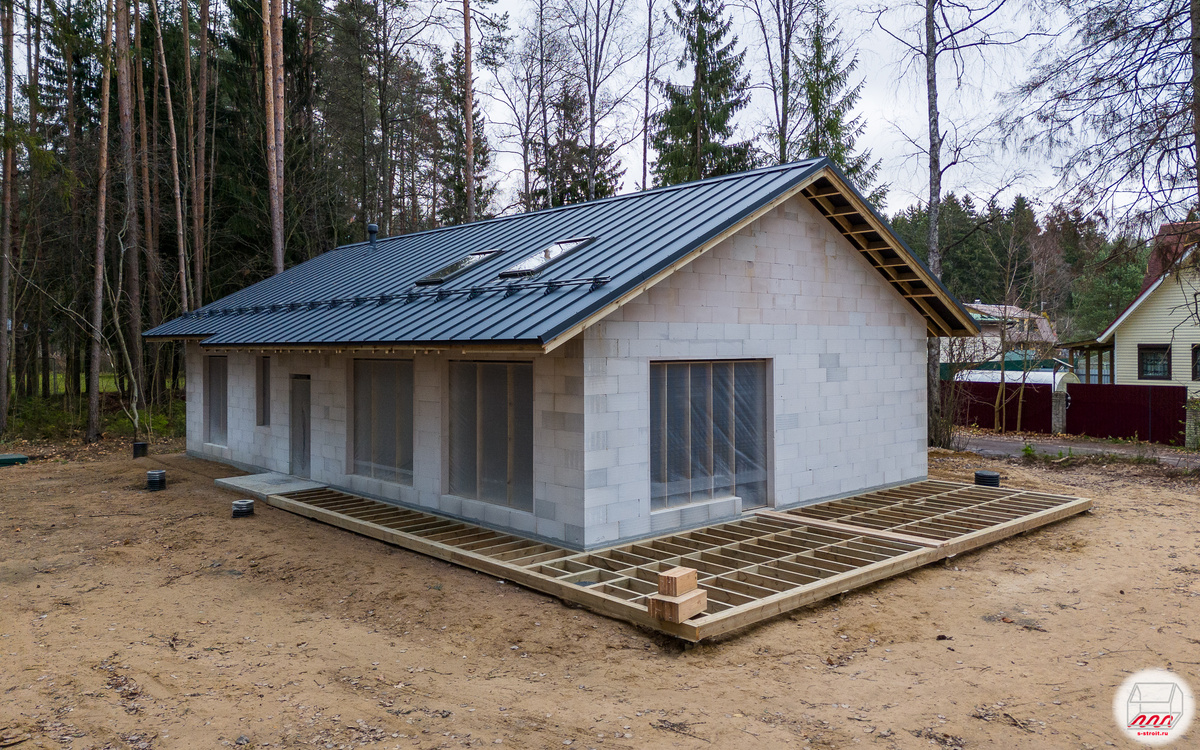 Осенью 2024 года в Зеленогорске впервые был реализован наш типовой дом №3 – проект одноэтажного дома 9,2*15,6 из газобетона, не получивший пока индивидуального названия.
