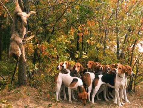 Стая гончих, предназначающаяся для охоты на волков на логовах, обязательно должна быть к ним притравлена. В процессе притравки у гончих развиваются злоба к волку и смелость его хватки. Притравка стаи производится за неделю до начала охоты со стаей на волков, обычно на прибылых, которых для этого необходимо иметь не менее двух. Притравка производится следующим порядком. В лесу, на одной из чистых полян, помещают волка. Для того чтобы он не убежал, на него надевают ошейник и прикрепляют цепь длиной 1, 5 м, а к последней — веревку 10 м, второй конец которой привязывают к одиноко стоящему дереву или колу, вбитому в землю. В стороне от волка для наблюдения за ним садится человек. Лучшее время подсадки волка — раннее утро, т. е. время, соответствующее охоте на волков. Подсадной волк сажается не менее как за 20— 30 м до напуска гончих. Место напуска выбирается от волка под ветром за 400—500 м от него. От места напуска к волку прокладывается искусственный волчий след. Для этого берется мешок