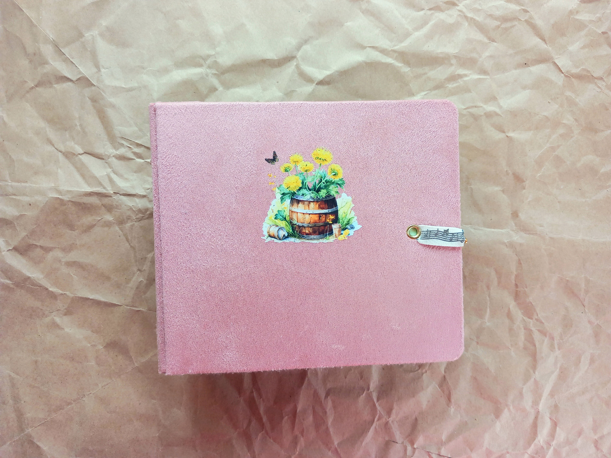 Здравствуйте, уважаемые сохоббиты! Меня зовут Анжелика. Первого января я выкладывала видео-обзор новой работы "летний Миник". Из-за болезни сына, я не делала большие работы около года, кроме разве Дневничков и круглых карточек. Все мои работы на этом канале двух-трёх годовой давности. Итак, Миник. Обложка обтянута искусственной замшей и украшена термо картинкой. Закрывается на декоративную магнитную застёжку, которая крепится на хлопковую ленту с нотным станом. На корешок расположила бабочку из кожзама и украсила её бусинами. В минике 4 оформленных разворота. Первый разворот Второй разворот Третий разворот. Четвёртый разворот. Переплёт в Альбомчике прошивной вручную. Для оформления использовала различный декор: текстиль, вырубку, вырезалки, высечки, кальку, наклейки, деревянные фишки, отштамповки и многое другое. Очень люблю делать именно не большие Альбомы для фото 7,5*10 см или 6*8 см. Такие работы приятно держать в руках, рассматривать в них фотографии и они очень мило смотрятся