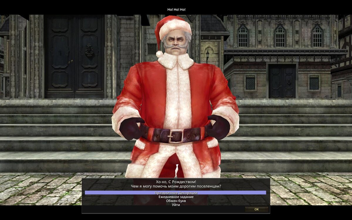 Ребята, таки наконец это свершилось! Появился сервер на котором можно играть на руссском языке! Конечно, видно что по большей части перевод был произведен машинным способом, местами есть непереведённые артефакты, но! самое главное, клиент работает стабильно, никаких вылетов, как было на других серверах. Например вот: Новогодний НПС Санта, сразу понятно что он хочет и куда тыкать. Так что если вы давно хотели понастальгировать по старой доброй Granado Espada, но языковой барьер вас отталкивал - спешите залетать на сервер Classique. Наконец-то можно будет понять за лор игры, прочитать душищипательные истории сюжетных линей персонажей на русском языке. Главное, что бы перевод не останавливался, а ттакже коснулся дальнейших обновлений. Вот. А теперь про ивент и Санту, что на картинке выше. Да-да. Я не много опоздал ивент начался аж 17 декабря и если вы уже играете на сервере то скорее всего сами в нём разобрались. Дед стоит в Ребольдо, вот тут, у входа к Линдону: И предлагает на выбор две