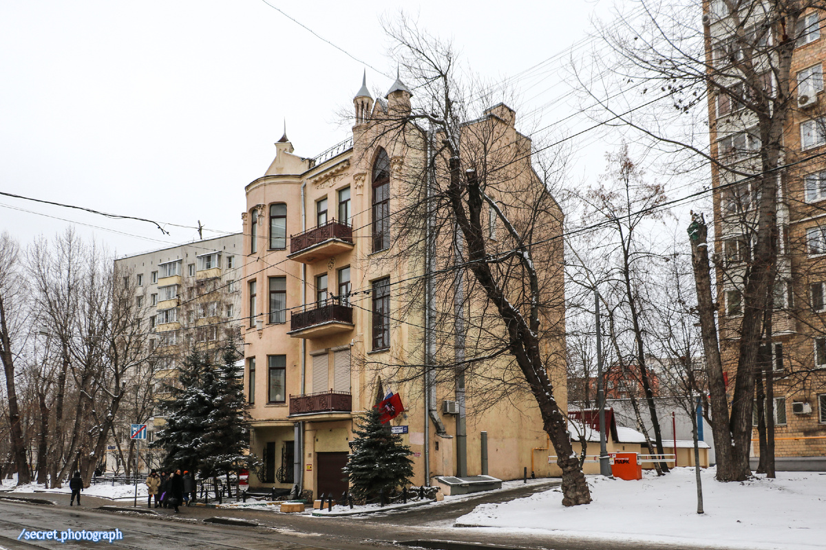 Иногда кажется, что 1913-1914 годы были самыми плодотворными на шедевры московского зодчества. В 1914-м построили и этот четырехэтажный доходный дом. Его заказчиком выступил крестьянин Антон Фролов. Правда, земледелием тот уже давным-давно не занимался, целиком переключившись на торговлю. Однако не спешил вступать в купеческую гильдию, чтобы не платить высоких налогов.