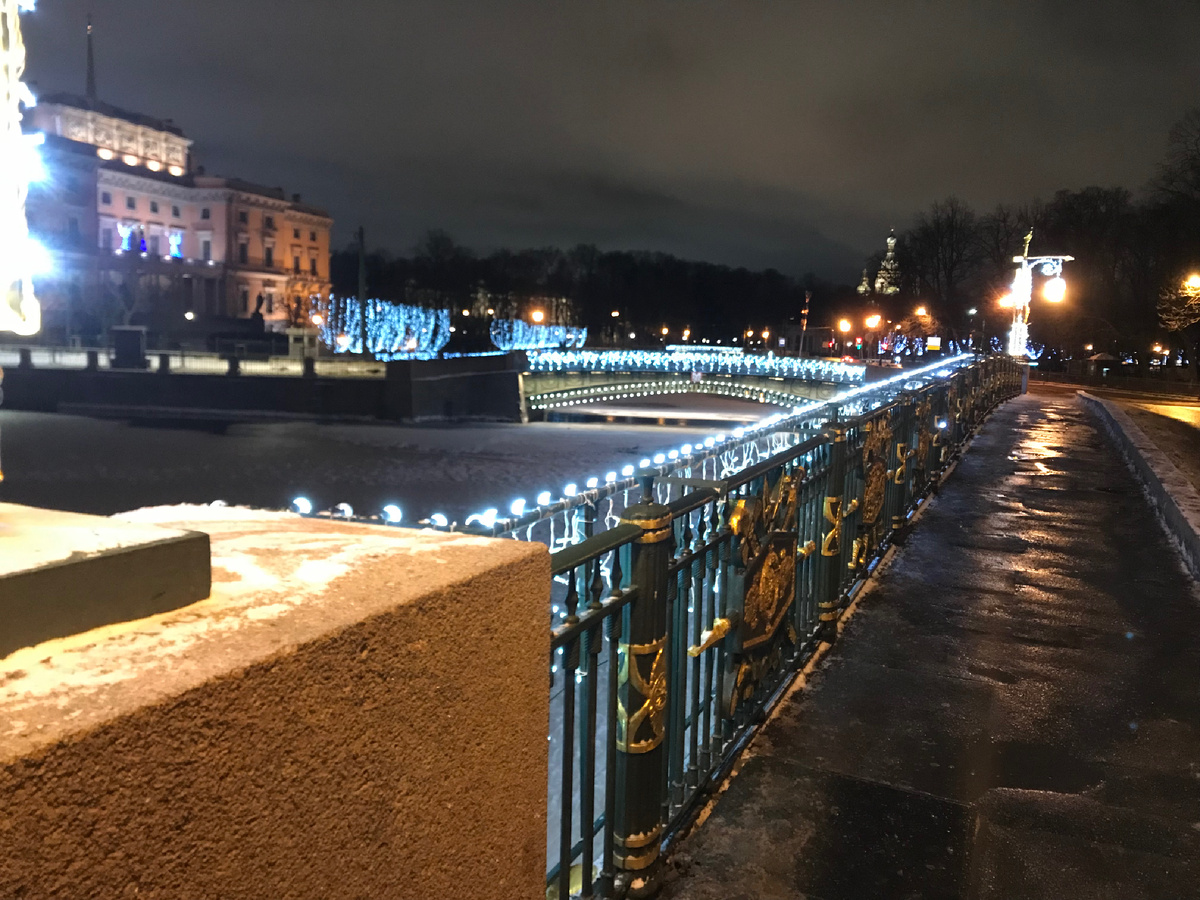 Петербург к 31 декабря полностью преобразился и стал таким праздничным, ярким и красивым. На всех городских площадях установлены украшенные ёлки с подсветками и гирляндами. Особенно красиво на Невском проспекте. Словно транспаранты через всю ширину проспекта шикарно светятся новогодние узоры, словно в царских палатах. Фонарные столбы и фонари тоже украшены светодиодными фигурками. Особенно сказочно проезжать на велосипеде ночью, когда машин нет на Невском — едешь, словно в детство попал! А как украшены новогодними иллюминациями знаменитые петербургские мосты — Дворцовый, Троицкий, Литейный, Большеохтинский — это песня, это произведения светового искусства. 31 декабря в 4 утра, а точнее уже 1 января, я был на мосту, снял видео для Вас, если не смотрели, вот посмотрите: А что творилось в магазинах и супермаркетах? Это огромные очереди. Люди сметали продукты, запаслись дня на три, наверное. Мне было жутко интересно посмотреть на людей в новогоднем ажиотаже в магазинах и супермаркетах