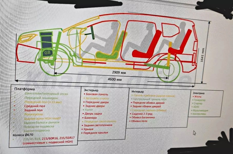 Желающим получить настоящий минивэн от главного российского автозавода лучше воздержаться в этом году от покупки китайских машин. В 2025 г АвтоВАЗ покажет прототип минивэна RGH, а возможно, и выпустит первую лимитированную серию своих машин, над которыми «коптит» с 2023 г. И надо сказать, вполне результативно. На днях в сеть просочилась информация от одного из блогеров, который вхож в святая святых автозавода в Тольятти. По крайней мере, общий эскиз задания ему показали. Длина кузова на основе каркаса Весты будет увеличена до 4,6 м, база – до 2,9 м. То есть, практически, в размер нынешней Ауры. При длине кузова в 4,6 м новый минивэн будет еще и самым высоким – 1,64 м. Это огромный плюс, если говорить о комфорте пассажиров. И довольно серьезная проблема для конструкторов. Центр тяжести машины заметно станет выше, при том, что в планах поставить автомобиль на колеса на 16-17 дюймов, а в некоторых версиях и на 18 дюймов. Управлять таким «автобусом» будет непросто, так что с высокой посадк