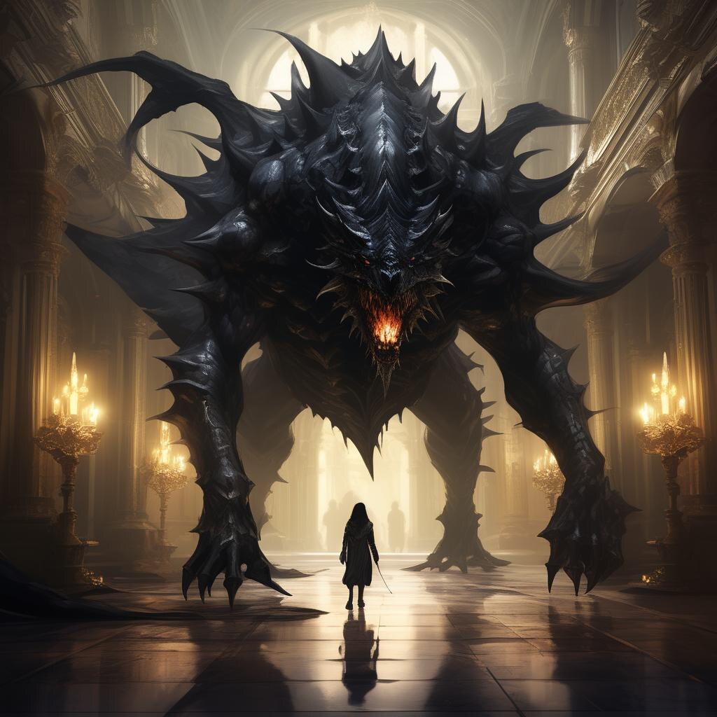 пальцем в огромную тушу твари, которая уже раскрошила каменные плиты