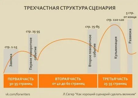 Смотришь бывалочи, кино и предсказываешь примерное, а иногда и точное развитие сюжета. Конечно рано или поздно всё искреннее и непосредственное, попадая в руки циников, становится на рельсы ширпотреба. Производство не любит случайностей и тогда рождаются схемы, графики, формулы успеха. Чтобы выжать максимальный приход из минимальных вложений. Опять таки, я не против этой линии развития массового кинематографа, но она, на мой взгляд, не должна оставаться единственной. И если уж появилось множество структур для написания сценариев, то задача авторов, не тупо следовать и примитивно обставлять их, а максимально вуалировать и разворачивать сюжетные линии. Иначе, то о чём я сказал выше: Все зрители станут предсказателями и отвернутся от банального продукта. Или, что ещё хуже, превратятся в банального потребителя. Свою миссию, как раз вижу в соединении искреннего творчества и успешной кассы. А схемы пусть будут. Они как ноты. Но музыкантов много а в вечности остаются Моцарт, Чайковский, Па