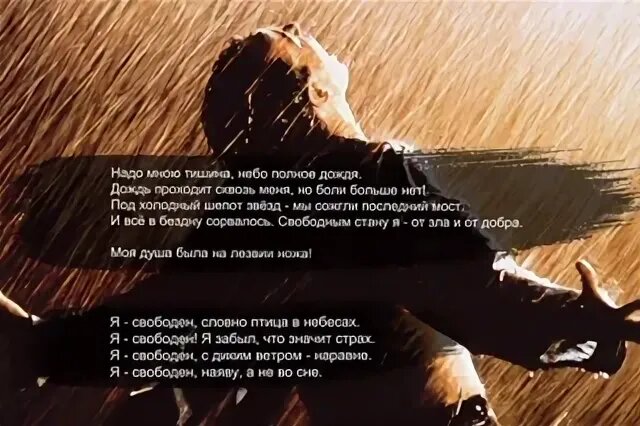 Искала с утра текст песни Кипелова и натолкнулась на термин РОК-БАЛЛАДА. Призадумалась и засомневалась, что это именно баллада. Нет основной структурной составляющей – диалога, правда, есть воздействие на воображение слушателя, которому непременно захочется разгадать некую тайну, на которую намекает автор. Первый раз решила воспользоваться ИИ и спросить его, что он думает по этому поводу. В результате – краткий пересказ.: Лирический герой песни переживает расставание с прошлой любовью и прежней жизнью и чувствует себя свободным от судьбы и от людской молвы. Разве? Прав отчасти. Вот текст. Музыка композиции написана Сергеем Мавриным и Валерием Кипеловым, текст — поэтессой Маргаритой Пушкиной в соавторстве с ним же: .Надо мною - тишина, Небо полное дождя, Дождь проходит сквозь меня, Но боли больше нет. Под холодный шепот звезд Мы сожгли последний мост, И все в бездну сорвалось. Свободным стану я От зла и от добра, Моя душа была на лезвии ножа. Я бы мог с тобою быть, Я бы мог про все забы