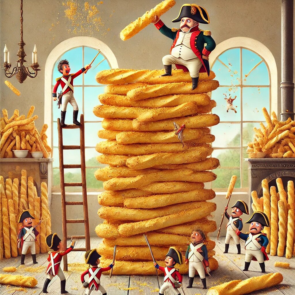 Прошло почти сто лет, и гриссини получили новую волну славы. Французский император Наполеон Бонапарт был таким фанатом этих хлебных палочек, что называл их “les petits bâtons de Turin” ("туринские палочки").