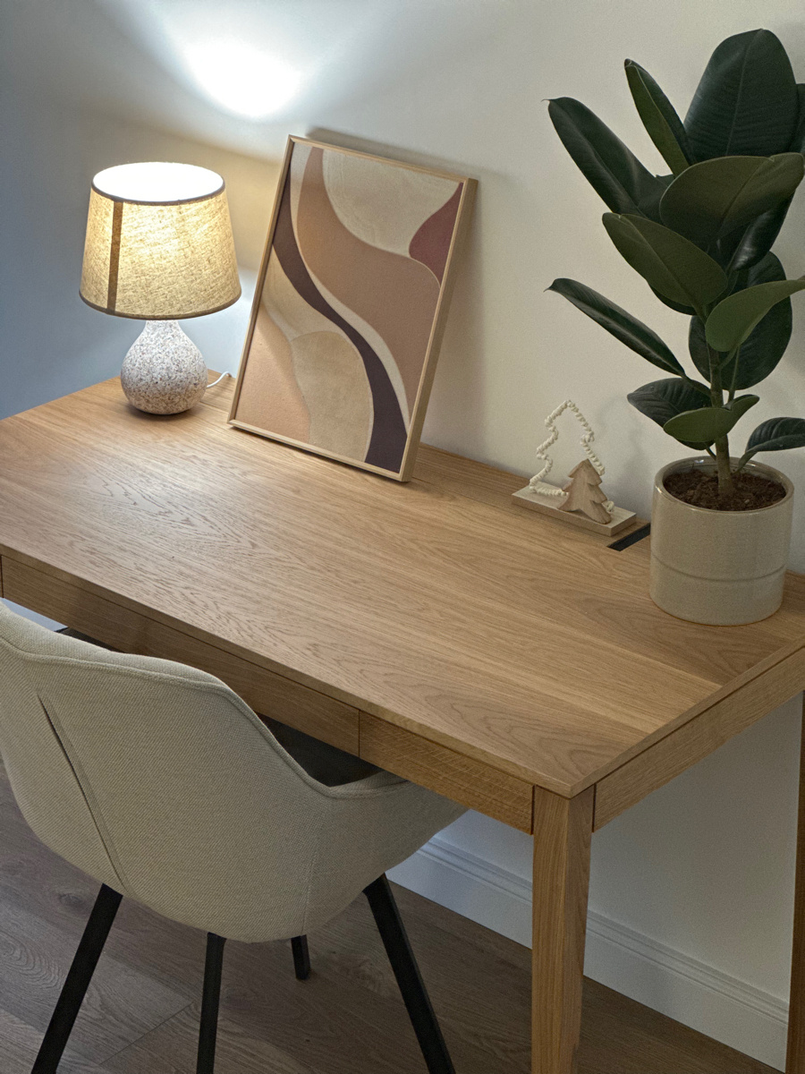 Представляем вашему вниманию дизайнерский письменный стол по очень приятной цене. Стол называется Gatura Imir PRO. Внутри этого стола есть ящик и кабель-менеджмент в задней части стола, в котором можно удобно хранить провода. Стол выполнен из массива и шпона дуба, что свойственно премиальным столам. Подобные столы можно купить как на озоне или Яндекс-маркете, так и напрямую у производителя.