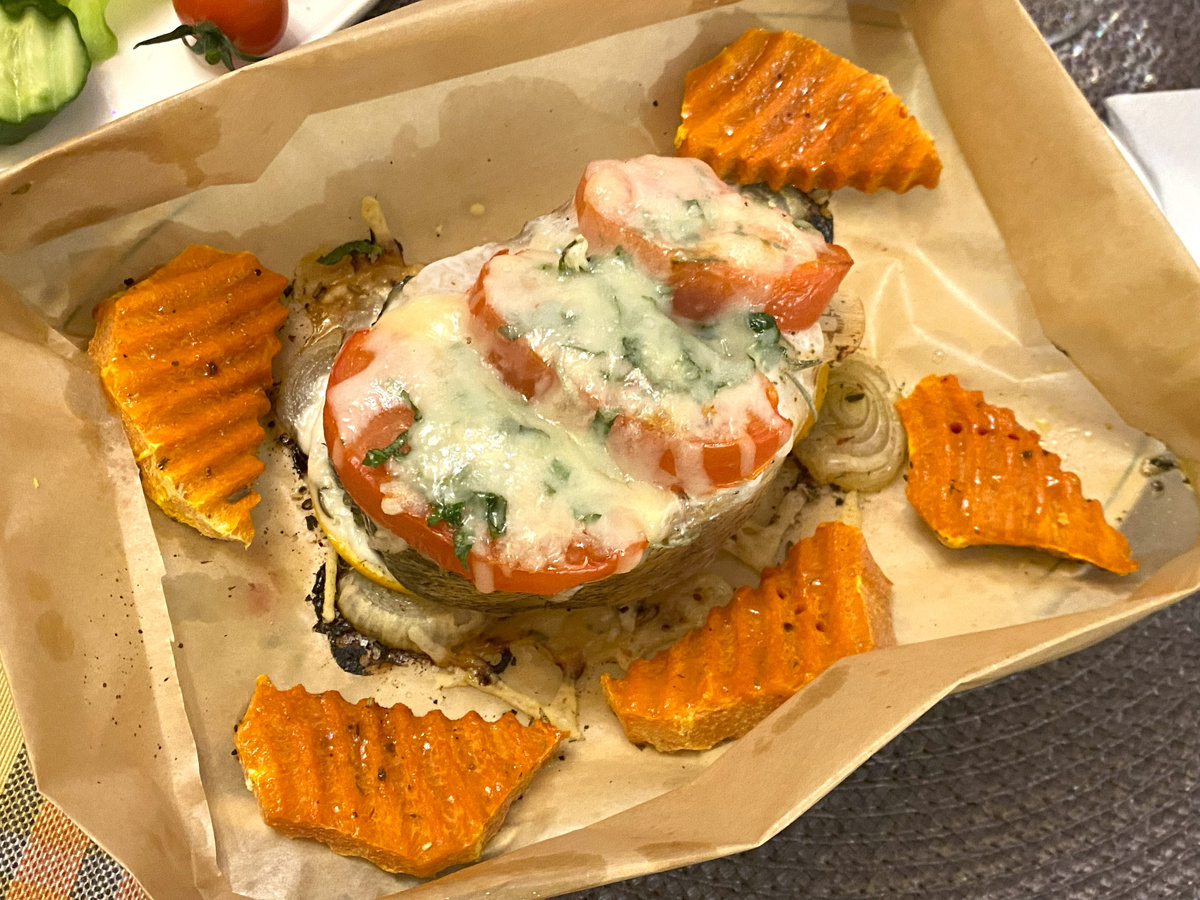 Целиком вариант не рассматривала, потому что люблю рыбу есть свежеприготовленной, а вдвоем судака нам было не одолеть. Что из этого получилось, читайте! По рецепту белую нежирную рыбу надо было запечь на фольге и сверху прикрыть фол