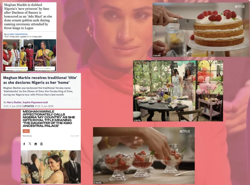Роскошный комментарий к предстоящему шоу герцогини Сассекской "С любовью, Меган!". Пользователь сети Интернет под ником @RooshMama задалась вопросом: почему "обиженная" "британскими расистами", в частности, королевской семьей, Меган Маркл, в своем новом шоу для Netflix старательно корчит из себя британскую принцессу, забыв о своих "черный нигерийских корнях", а верные фанаты ей бурно аплодируют? @RooshMama пишет: - Не могу себе представить, какие умственные способности нужны, чтобы стать поклонником Меган. Когда она выходит замуж за принца Гарри, они чествуют ее как "черную" королевскую особу. Меган быстро выпячивает свое происхождение. Во время их заграничного тура тщеславия ее приветствовали как "нигерийскую принцессу" и награждали титулами. Меган сказала, что Нигерия — ее новый дом. Если она такая икона для чернокожих, почему она не чтит их наследие? Почему же тогда ее видят готовящей английские блюда и чтящей английские традиции? В трейлере вы видите, как она любовно готовит посл