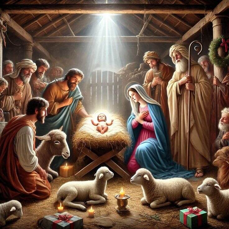 Иисус Христос родился в Вифлееме, в тот год император велел провести перепись новорожденных. Богородица и Иосиф были из рода Царя Давида. В городских гостиницах по дороге в Вифлеем места им не нашлось, поэтому Спаситель Мира появился на свет рядом со стойлом, а Богомладенца положили в кормушку для скота — Его первые ясли. О свершившемся чуде первым узнали пастухи, которые охраняли неподалеку свои стада, как гласит Евангелие от Луки. Звездной ночью к ним явился Ангел Господень, чтобы возвестить Великую Радость «ибо ныне родился вам в городе Давидовом Спаситель». Вместе с Ангелом явилось и многочисленное воинство небесное, взывающее «Слава в вышних Богу!». Первыми, кто поклонился Господу, были простые люди, и простые люди стали первыми проповедниками Христа. Ангел сказал им: «Не бойтеся: се бо благовествую вам радость велию, яже будет всем людем, яко родися вам днесь Спаситель, Иже есть Христос Господь, во граде Давидове», и смиренные пастыри первые удостоились поклониться ради спасения людей Снисшедшему до «рабия зрака». Что же означали эти слова? До Рождения Христа Бог еще никогда прежде не воплощался. Взяв на себя грехи мира, Иисус подарил людям надежду на Спасение, заповедовав своим ученикам прежде всего — любовь. Апостол Павел говорил, что смерть для него стала бы приобретением, потому что в теле он был отлучен от истинного источника жизни — Христа.