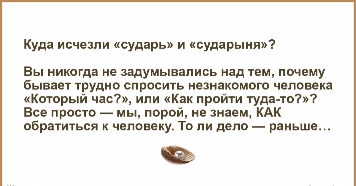 Я вспоминаю тот случай, когда писал о «сударях» и «сударынях», — столько было комментариев! Одним нравилось: «Больше уважения в речи», другим казалось, что это «тяжёлый винтаж» или какое-то перестиранное кружево, которое давно пора выбросить.