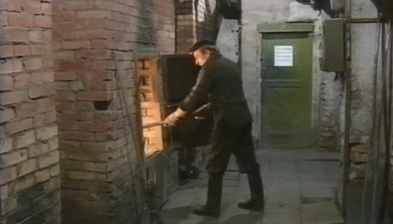 Народная молва утверждала, что непорядок с теплом в городе происходил из-за нерадивых кочегаров. Но посмотрите на эти кадры – явно благообразный кочегар, работает умело и профессионально. А их, кочегаров, ругали по-всякому – пьют, плохо топят, не следят за порядком. Обидно было такое слышать Владимиру Ангельчуку: «На работе? Нет! А после работы дома, естественно, любой человек может за ужином – почему нельзя?»