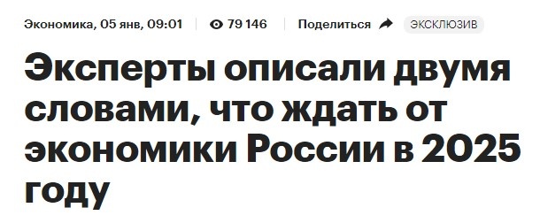 Издание РБК попросило аналитиков описать перспективы российской экономики 2025 года "в двух словах" и прокомментировать это. Прозвучало несколько весьма интересных определений, позитивных среди них не было вообще.