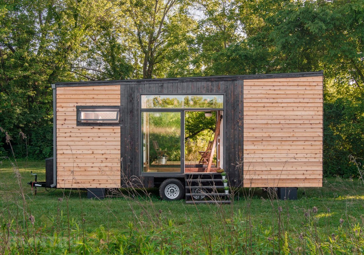Отличия от большинства домиков на колёсах заметны уже во внешнем виде Alpha Tiny Home. Основная часть корпуса отделана высококачественным кедровым сайдингом. Широкие двери и массивные окна выполнены из стекла и занимают действительно много места на фасаде домика.
