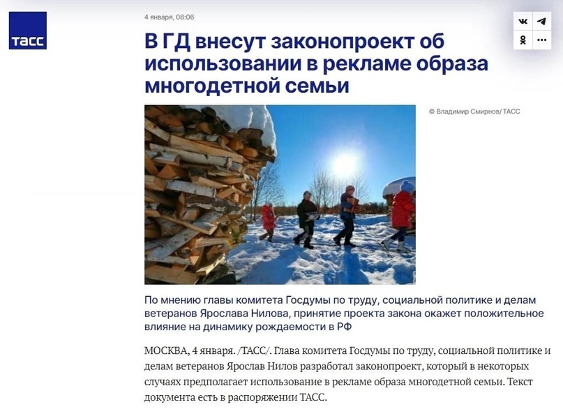 В ГД внесут законопроект об использовании в рекламе образа многодетной семьи!