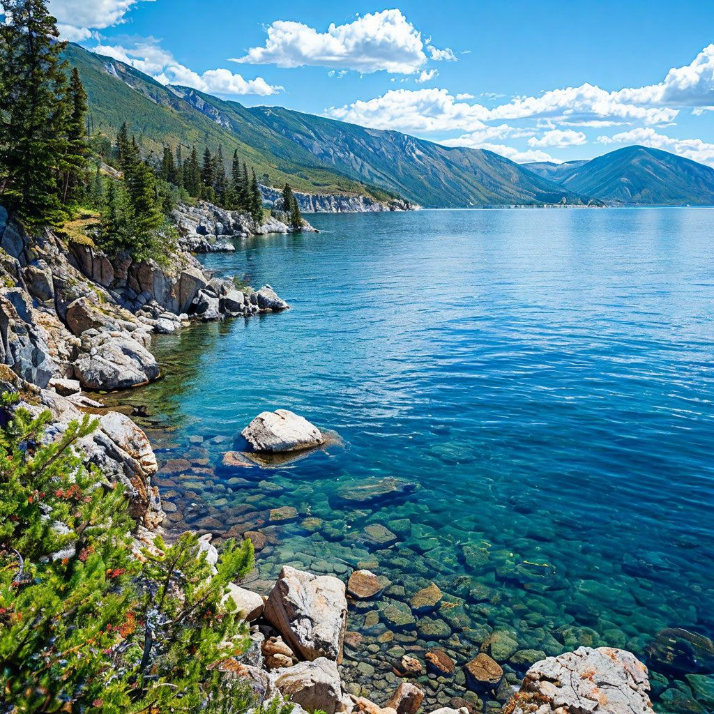В далекой стране, где синие воды встречаются с высокими горами, раскинулся величественный Байкал — самое глубокое озеро на Земле. Его прозрачные воды были полны тайн и чудес, а берега украшали густые леса и цветущие поля. Но мало кто знал, что у этого озера был свой хранитель — старый дух по имени Байкалушка.