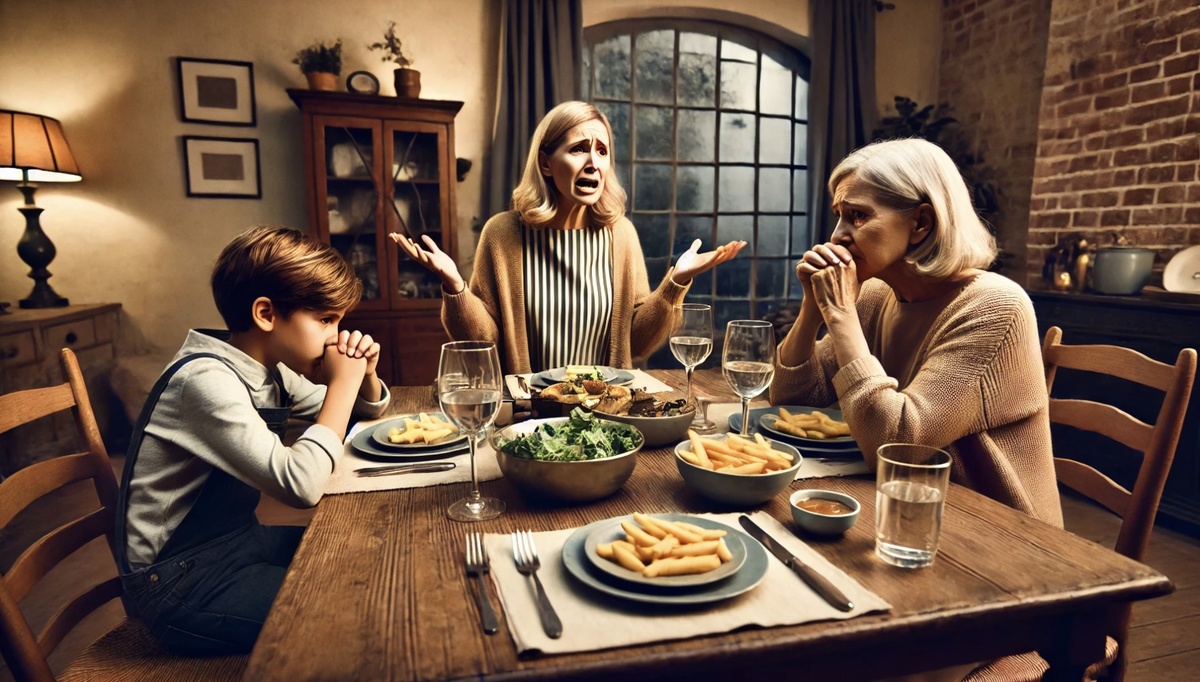 Свекровь, Ирина Петровна, сидела за столом с её внуком Артёмом, бросая критические взгляды на невестку.