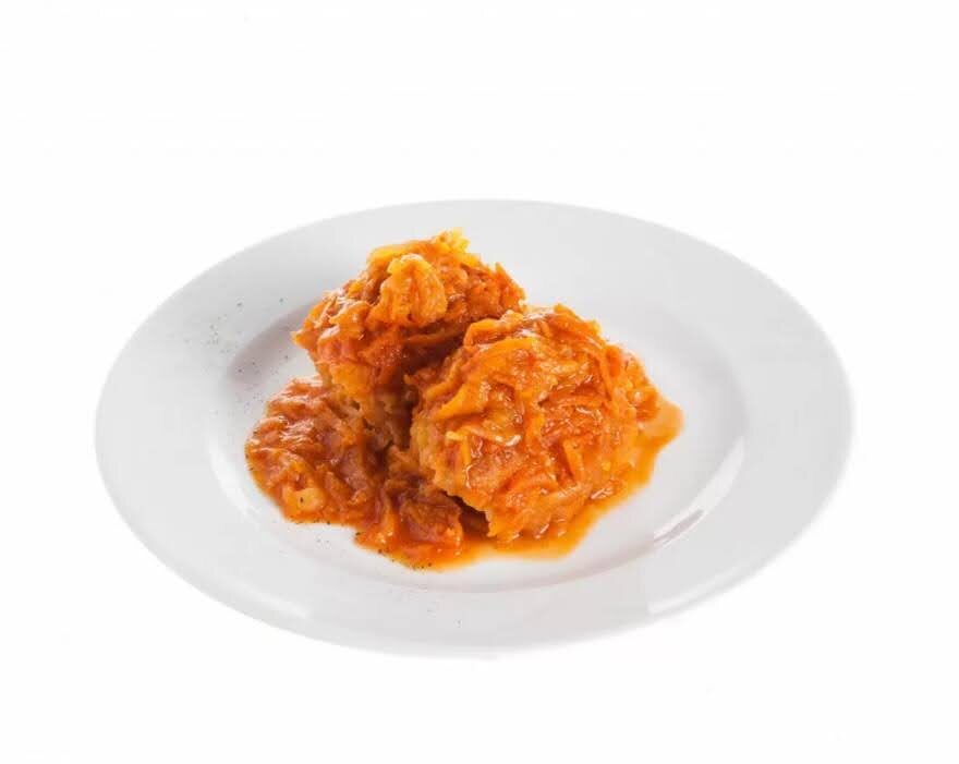 Филе минтая с луком, морковью и томатной пастой, запечённое в духовке