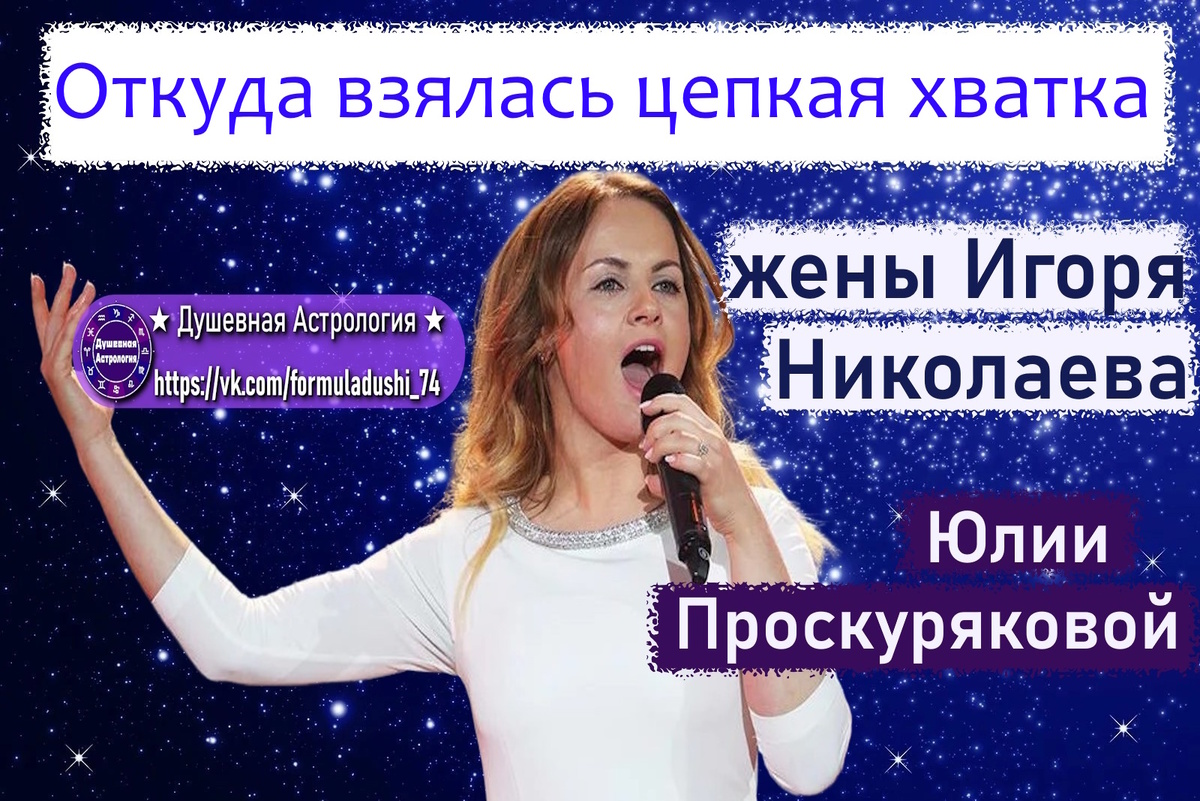 Уже не первый день Юлия Проскурякова будоражит общественность своим выходами: будь то откровенное платье, отдых или пляски. Объединяет это только одно - рядом нет именитого супруга Игоря Николаева. Про Игоря мы еще поговорим, ведь скоро у маэстро день рождения, а вот речь сейчас идет о Юлии. Построив ее карту, поразилась, она находится в кризисе среднего возраста, как и ее ровесница Анна Седокова, однако, какие разные жизненные обстоятельства сейчас. Так чем же известна Юлия и что она нажила за годы супружества? Подробнее в статье и разбором ее космограммы.