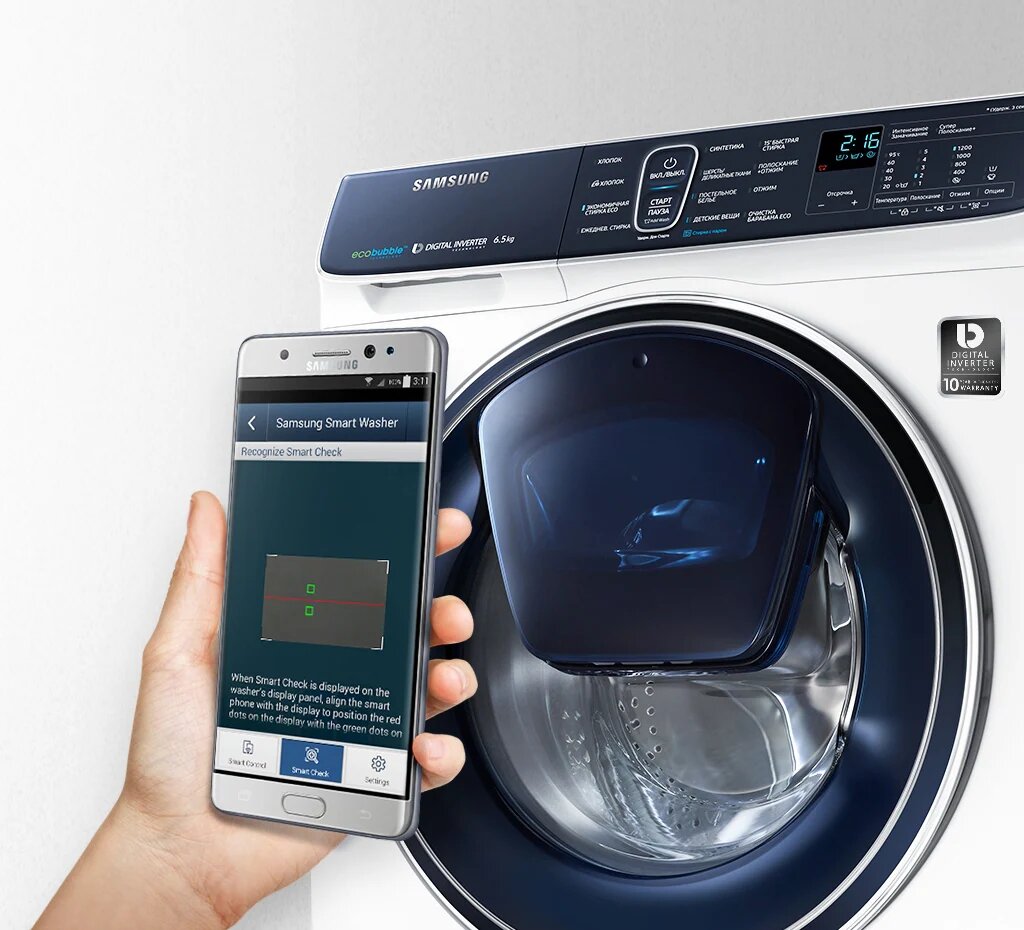 Всё это управление ИИ происходит не только автоматически — вы можете контролировать и настраивать всё через мобильное приложение Samsung. Это даёт вам возможность запускать стирку и сушку удалённо, а также получать уведомления о завершении работы или необходимости обслуживания устройства. Через приложение вы также можете просматривать данные об эффективности работы устройства, такие как расход воды и электроэнергии, и при необходимости скорректировать настройки.