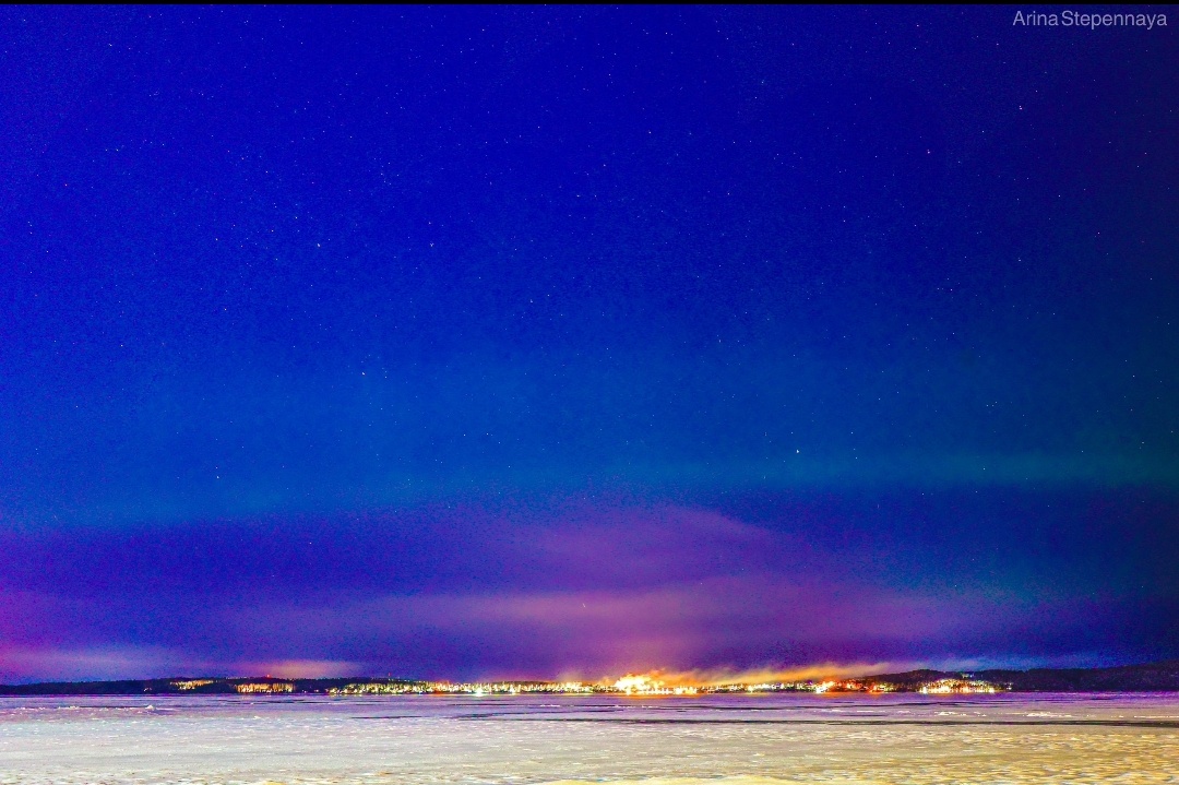 Фотограф запечатлела небесное явление над столицей Карелии. Небесную красоту — полярное сияние — запечатлела в небе над столицей Карелии в ночь на 6 января фотограф Арина Степенная. Фото сияния она разместила на своей странице в соцсети. «Зеленая арка северного сияния появилась ночью над Петрозаводском», — написала фотограф. По словам Арины Степенной, возможности запечатлеть сияние пришлось ждать довольно долго. «Долгожданный момент настал после того, как облака наконец-то рассеялись на пару часов, открыв взгляду небесный спектакль, — написала фотограф. — Небо озарилось несколькими зелёными и фиолетовыми полосками, которые плавно изгибались, создавая волшебную арку». Арина Степенная отметила, что, хотя сияние было не столь ярким, даже такое скромное проявление небесного чуда стало настоящим подарком для тех, кто успел его увидеть. фото: Арина Степенная/ВК