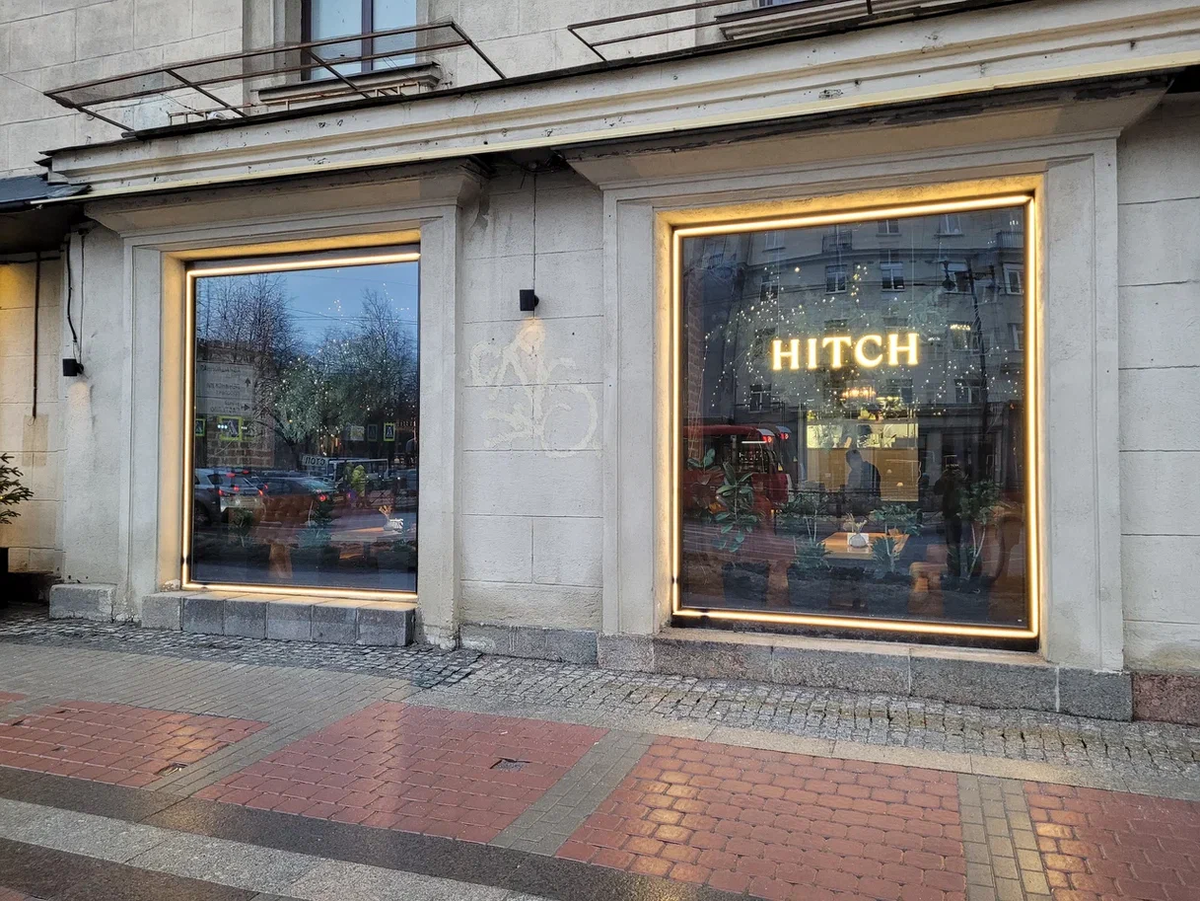 Вывод для тех, кому лень читать. Ресторан, очень хорошо обращающийся с мясом, и так уверовавший в свою исключительность, что на всё остальное особенно и внимания не обращает. По еде рекомендация, а желания возвращаться нет. Два раза был, первый раз с бронью, дали маленький столик в дальнем зале - и гардероба тут нет, вешалки распределены по помещению, так что я в куртке иду через весь ресторан к своему месту. Неужели так всегда было? Интерьер тёмный, света хоть сколько-то только у окон (да и то, какой в декабре свет), видимо, аудитория ресторана ценит кулуарность и скрытность. Сервис - я помню визит в именно этот "Хитч" (их когда-то было больше одного в городе) в конце 2016 года, тогда точно был другой сервис. Вплоть до демонстрации отрубов мяса на блюде со льдом - ткнуть "вот этот хочу". Не прошу демонстрацию! Прошу хотя бы минимальную презентацию блюд при подаче. Оба визита официант приносит-уносит молча. Мнение о съеденном не спрашивают. Как-то не ресторанно. Бутылку пива принесли,