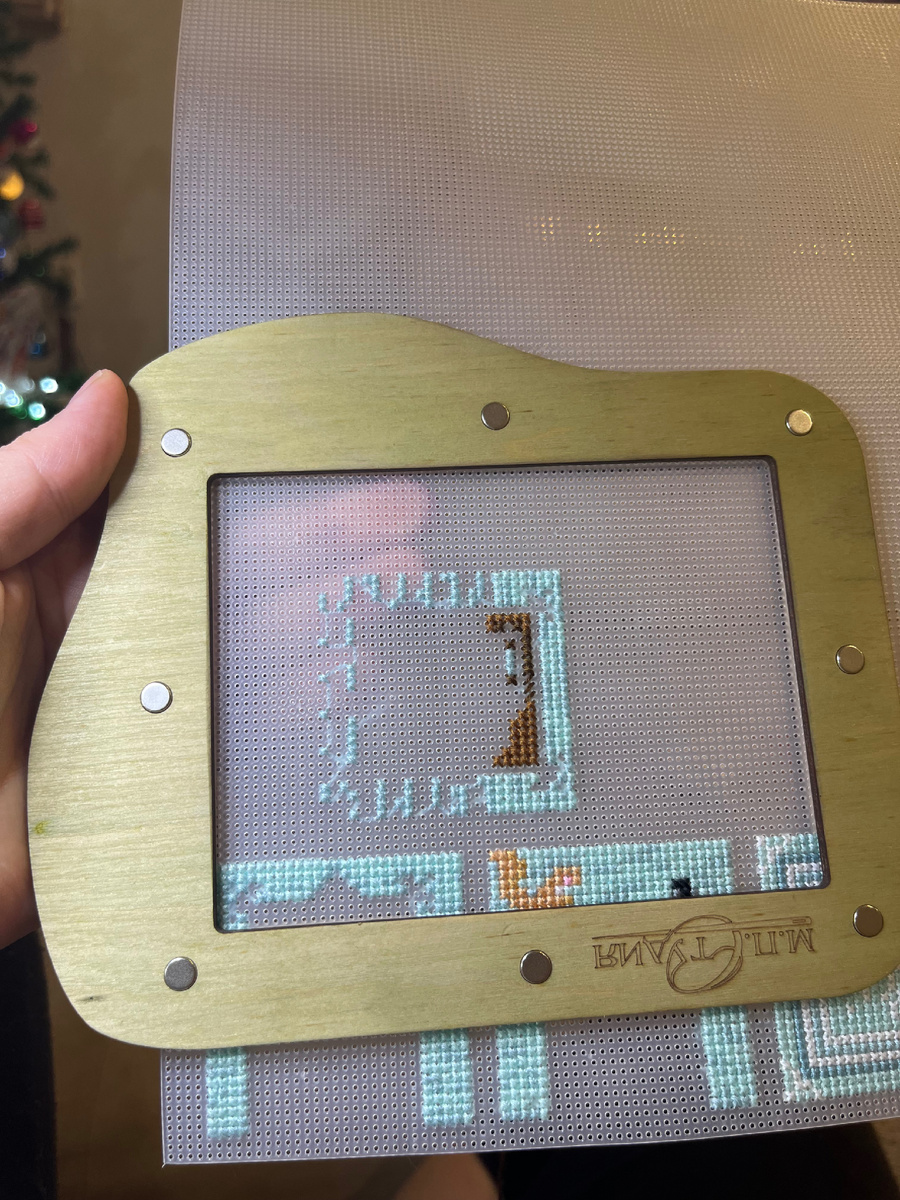 Подарили мне тут на Новый год магнитные пяльцы для пластиковой канвы от МП-Студия. Раньше я пользовалась пяльцами от неокрафт, вполне себе достойные и удобные. Получив такой приятный подарочек, естественно решила апробировать немедленно. Пяльцы сделаны с эргономичными вырезами - чтобы было удобнее держать в руке - как вертикально, так и горизонтально. Это я так понимаю, может еще есть какой сакральный смысл, мне недоступный. Держать действительно удобнее. Вопрос - почему при горизонтальном положении надпись «МП-Студия» оказывается перевернутой? Ну если уж маркируете пяльцы, может надпись сделать сбоку справа, чтобы не было когнитивного диссонанса при горизонтальном положении? Да, возможно это придирка. Но это раздражает и бросается в глаза. Сделать настолько удобную форму и влепить надпись в самое странное для нее место. Если пяльцы развернуть вертикально, на другой вырез, надпись вполне себе прилично смотрится. Переворачиваем на вырез номер два, горизонтально, и видим эту перевернутую