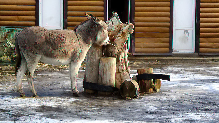 Для них достаточно запасено кормов. По графику животных осматривает ветеринар. Чувствуют себя питомцы зимой хорошо, никто из них не похудел.