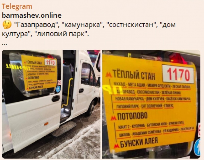 В Новой Москве официально зарегистрирован дептрансом столицы маршрут 1170 (от метро Теплый стан до метро Бунинская аллея через Коммунарку) с указателями на маршрутных автобусах, понятными мигрантам, отметил член СПЧ Кирилл Кабанов, передает REX 6 января. «Это могло быть смешно, если бы не было так страшно за нашу страну, нашу культуру и наш язык - наше будущее. А ведь главное, что всем безответственным начальникам на всё это откровенно наплевать», — возмущен Кабанов. Весь этот бардак происходит в многострадальной Коммунарке и прилегающих районах, которые являются не столько Новой Москвой, сколько фактическим придатком к "Фуд Сити", отметил правозащитник. Он напомнил, что именно там дептрансом Москвы в метро на официальных указателях «деревня Прокшино» переведена как «кишлак Прокшино», которые, по информации местных жителей, до сих пор не демонтировали, хотя ещё в 2021 году в СПЧ призывали к соблюдению требований российского законодательства и направили соответствующий запрос. Больше ст