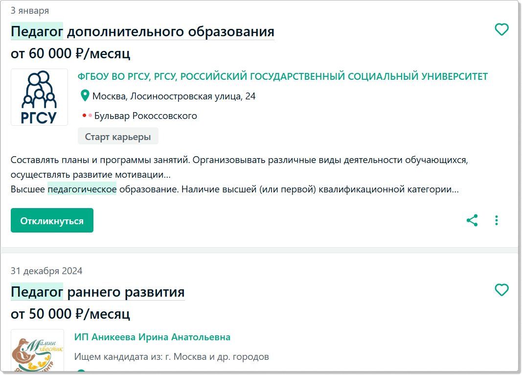А теперь к сладкому - к вакансиям! На Суперджобе - оттуда же вумный эксперт к нам пожаловал. Что нам навскидку выдает сайт при поиске вакансии педагога? Да негусто он для Москвы выдает: