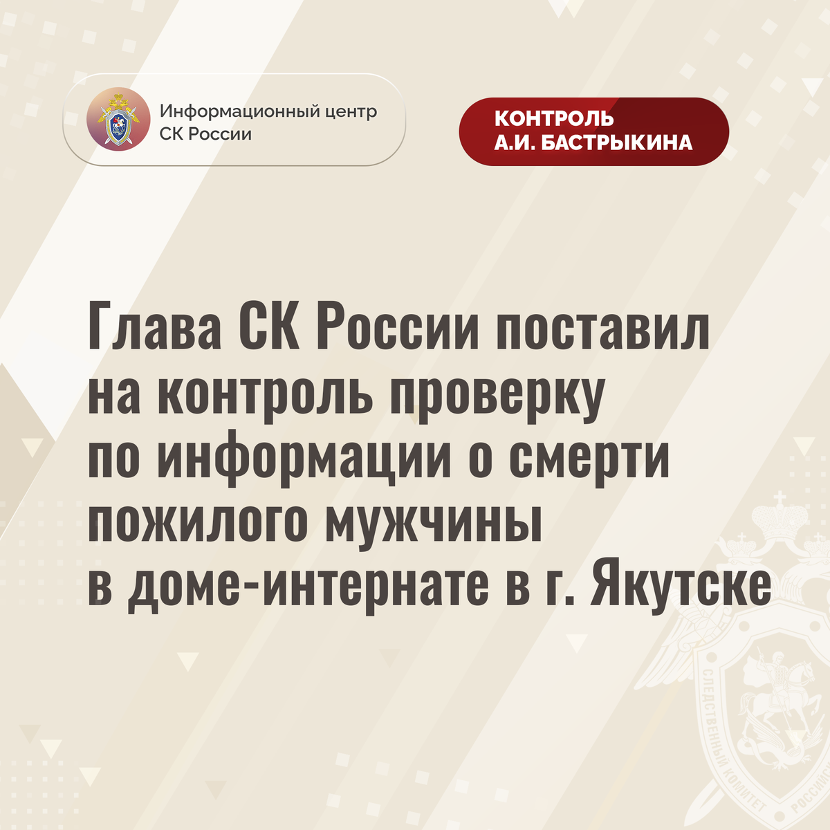 Глава СК России поставил на контроль проверку по информации о смерти пожилого мужчины в доме-интернате в г. Якутске