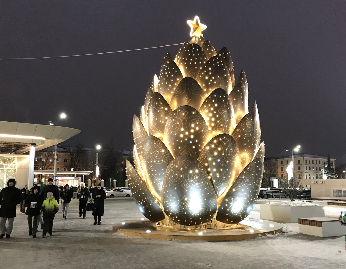 Ура! Мы встретили Новый, 2025 год! Прекрасный, волшебный, шумный и весёлый праздник. В новогоднюю ночь люди выходят на улицы и все вместе пускают салют, лепят снеговиков, танцуют вокруг ёлки и поют. В Казани к новогодним каникулам готовятся заранее, украшают город интересными и яркими огнями, гирляндами и фигурками. Предлагаю вам небольшую галерею фотографий тех мест, которые мне особенно приглянулись в этом году. Все они оригинальны и прекрасны. Но больше всего меня восхищает новогодняя шишка, которую устанавливают уже второй год перед парком им. М.Горького. У всех есть новогодние ёлки, а вот шишек новогодних я не видела раньше. Посмотрите, какая она красивая, издали видна и радует детей и взрослых дивными огоньками! А вокруг шишки разложены сверкающие новогодние подарки. Ну и, конечно, не забываем волшебных оленей, которые давно уже известны как друзья Деда Мороза, а в некоторых случаях и его транспорт.