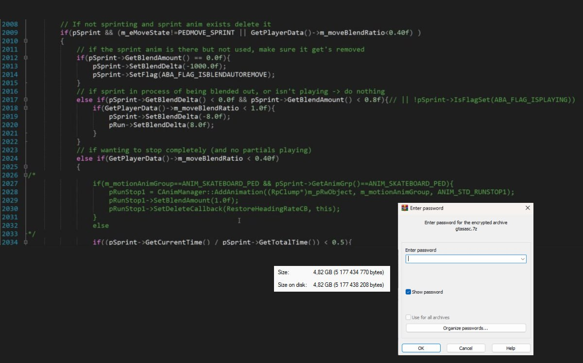Недавно в сети появилась информация о новой масштабной утечке: полный исходный код GTA San Andreas оказался в открытом доступе. Первым об этом сообщил блогер NationalPepper, опубликовавший скриншоты запароленного архива размером около 5 Гб на своей странице в X (бывший Twitter, заблокирован в РФ). Утечка уже вызвала активное обсуждение среди фанатов. Самой интересной находкой стало упоминание скейтбордов — элемента, который так и не попал в финальную версию игры. Информацию подтвердил бывший технический директор Rockstar Games Оббе Вермей, заявив, что студия действительно рассматривала возможность добавить в игру скейтбординг. Стоит напомнить, что это не первая утечка, связанная с GTA San Andreas. Ранее, после выхода провальной Definitive Edition, в сеть попали частичные данные об игровых миссиях. Однако текущая утечка может оказаться гораздо более значимой, поскольку речь идёт о полном исходном коде проекта, который может раскрыть множество скрытых или вырезанных элементов игры. Подоб