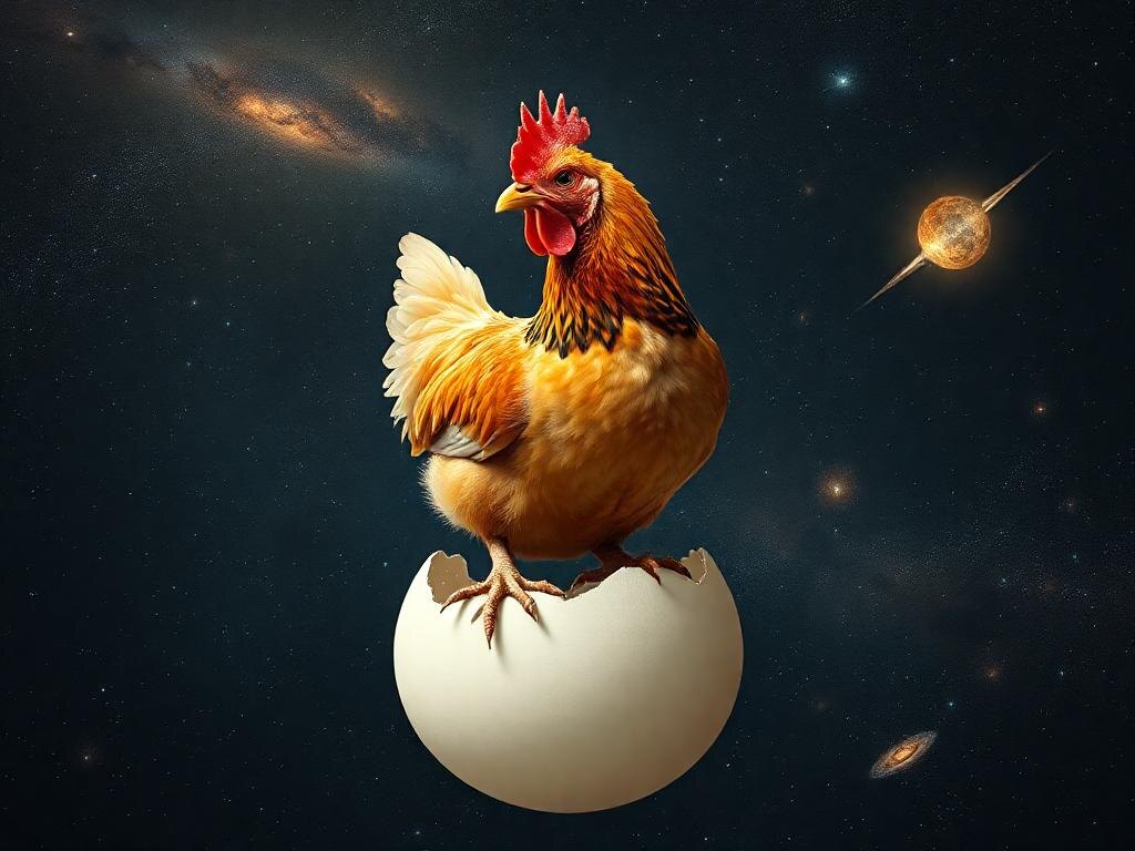 Короче, семейная философия, гласит о том, что "петух", если логически рассуждать, с одним космическим (комическим) яйцом остался. Из-под ребра взятым. А потом ещё вопрос текущего момента ребром поставил, когда из него курица вылупилась лупоглазая. И вылупилась на петуха.