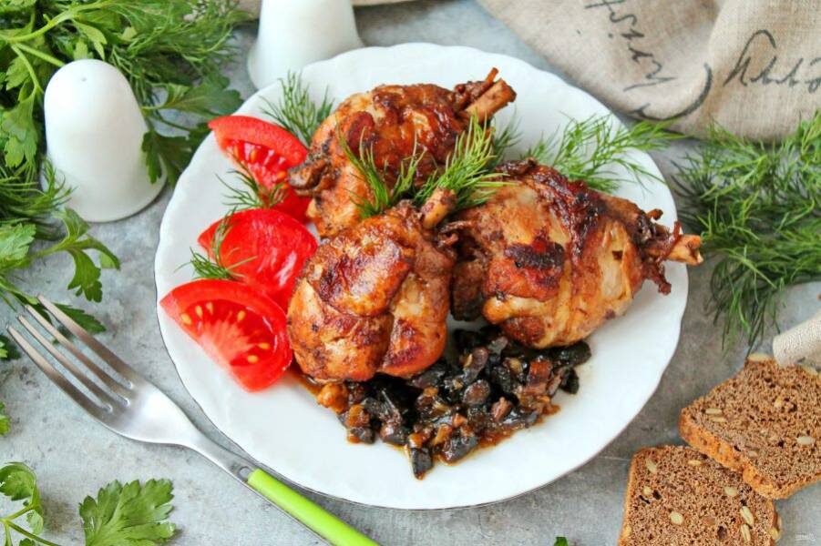 Закройте сковороду крышкой, убавьте огонь до минимального и томите в течение 30-40 минут. Курица "Провансаль" готова.