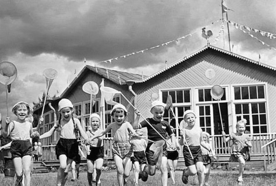 Маленькие дачники... Раньше в СССР летом многие детские садики всем составом вывозились на дачи, для того, чтобы дети подышали свежим воздухом, погрелись в лучах солнца, загорели и набрали вес)) А в это время их родители могли бы спокойно работать, а может даже и отдохнуть, или заняться другими ребятишками, более старшими или младшими.