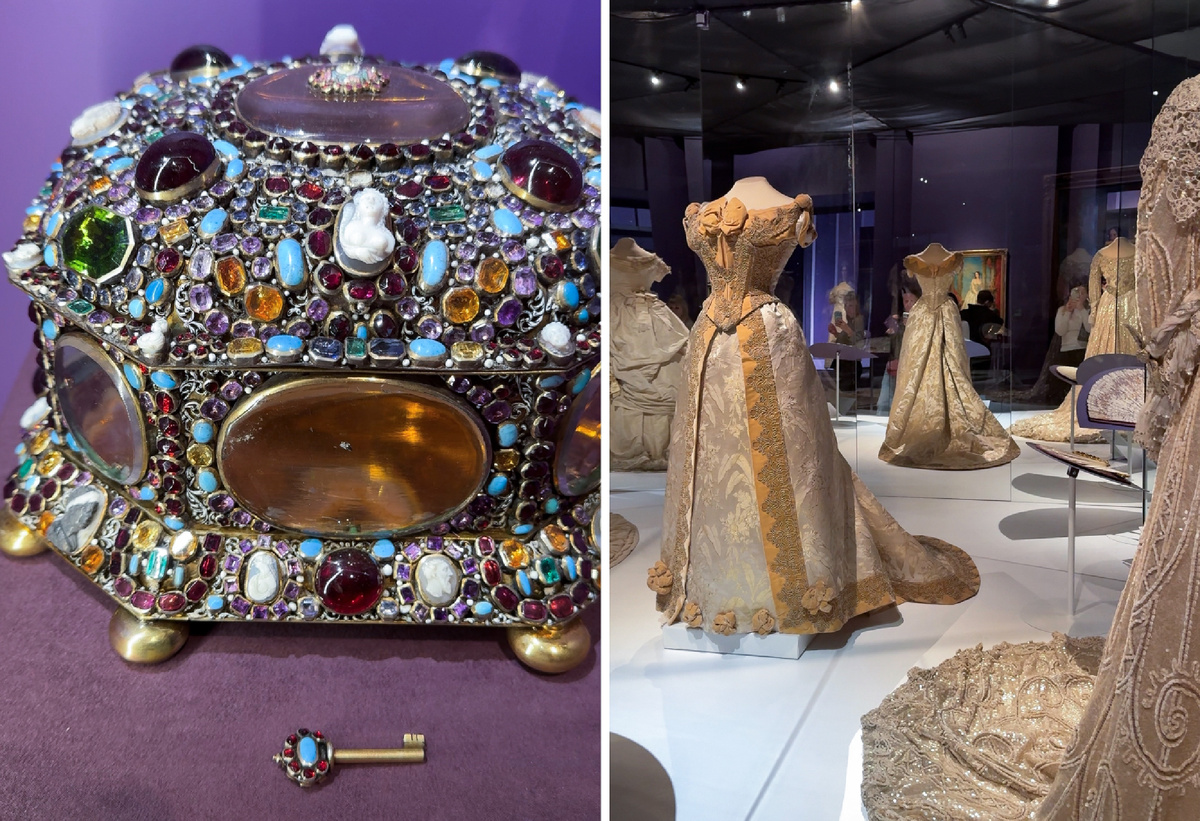 С 18 декабря в Москве можно увидеть роскошную выставку, посвященную моде русского двора. Окунуться в атмосферу бальной жизни императорского двора и заглянуть в гардеробные князей Юсуповых, императрицы Марии Федоровны и Александры Федоровны. Такая выставка впервые проходит в Москве, где представлены уникальные экспонаты, созданные отечественными и зарубежными мастерами, которые бережно хранились в Государственном Эрмитаже. Давайте окунемся в роскошную атмосферу выставки, где расскажем вам о самых ярких экспонатах. Складной кружевной веер княгини Зинаиды Юсуповой Бальное платье с узором в виде цветов орхидеи, принадлежало императрице Марии Федоровне. Фирма Morin-Blosseir, базировалась во Франции. Французское бальное платье 1900 года, принадлежало В.В. Карахан Парадное платье императрицы Марии Федоровны от фирмы Charles Worth, Франция Справа парадное платье императрицы Александры Федоровны Роскошный браслет с сапфиром 1900-ых годов Коллекция украшений с бирюзой Складной веер фирмы "Ti