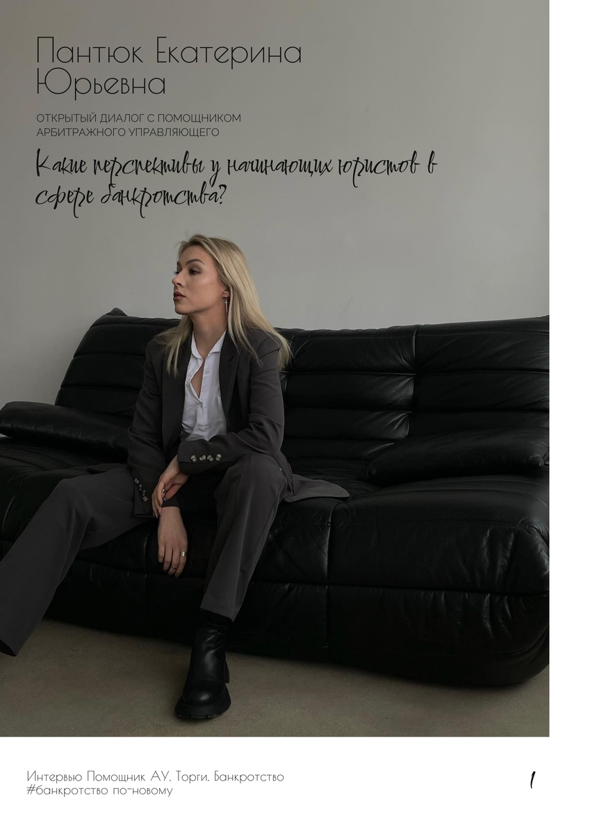 В рамках нового проекта продолжаю делиться историями специалистов, работающих в сфере банкротства. Сегодня хочу поделиться с Вами насыщенным интервью с помощником арбитражного управляющего, юристом - Пантюк Екатериной Юрьевной. В интервью Екатерина ответила на провокационные вопросы, в частности есть ли перспективы у банкротства как у бизнеса и какие возможности ждут начинающих специалистов. Получилось очень интересно, поэтому давайте не пожалеем реакций! «Помощник АУ. Торги. Банкротство»- это комьюнити молодых и амбициозных специалистов, которые жаждут знаний, общения и признания. Здесь Вы также сможете рассказать о себе и своих увлечениях; об интересных фактах, кейсах в сфере банкротства. Так, например, Вы можете написать статью по определенной тематике, тщательно и глубоко исследовав материал. Для коллег и любителей банкротного права -Telegram-канал. Для лиц, попавших в тяжелое финансовое положение - бесплатная консультация.