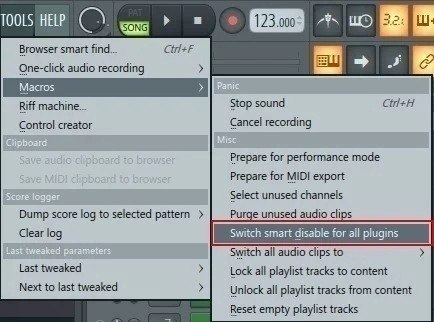 Если вы заметили, что ваш процессор начинает «задыхаться» при работе с крупными проектами в FL Studio, есть простой способ снизить нагрузку. FL предлагает удобную функцию «Smart Disable», которая автоматически отключает плагины, когда они не используются (прямо как в моём любимом Reaper). Это помогает сэкономить ресурсы процессора и улучшить производительность.