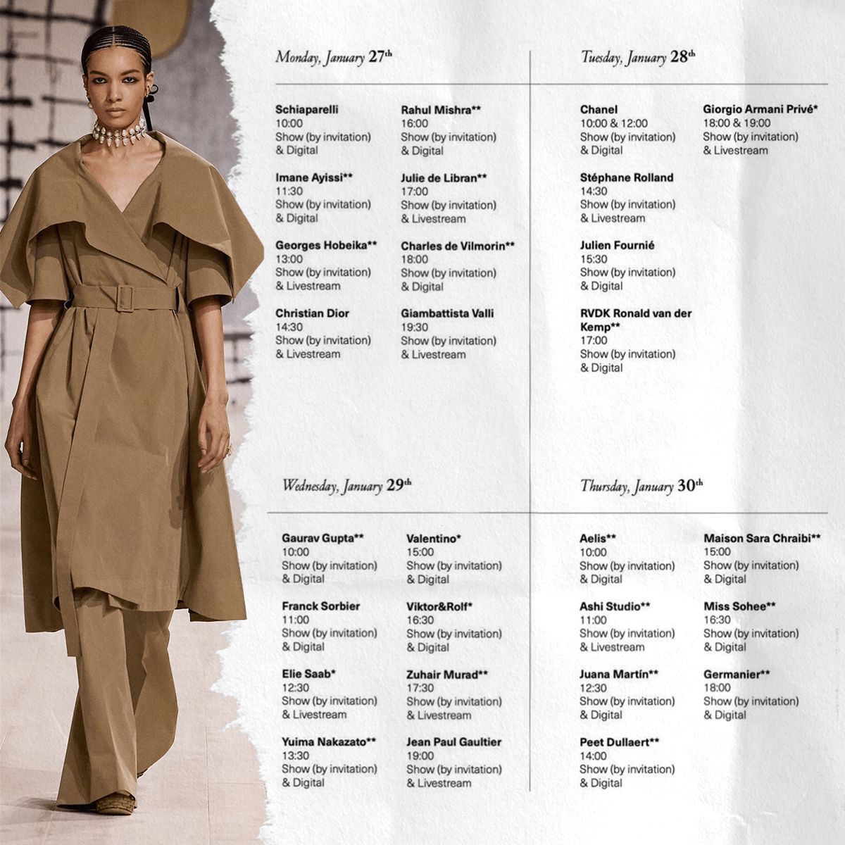 И чтобы ожидание не было таким томительным, можно вдохновиться на Кутюрной неделе моды, показы которой пройдут с 27 по 30 января. Всего будет 29 шоу. Откроют неделю Schiaparelli, закроют Germainer — впервые бренд представит коллекцию на неделе высокой моды. А гвоздь программы — коллекция Алессандро Микеле в Valentino. Больше интересного на нашем сайте POIZON