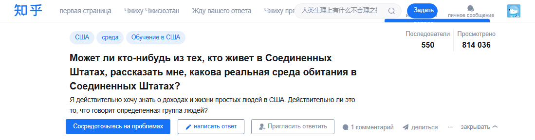 Ради поиска новых впечатлений я оправился на китайский форум Zhihu. Ох, и непросто оказалось на нем во первых зарегистрироваться, а во-вторых организовать поиск интересных тем. Тем не менее я справился и хочу предложить вам познакомиться с любопытными наблюдениями китайцев, имевших опыт проживания в США.