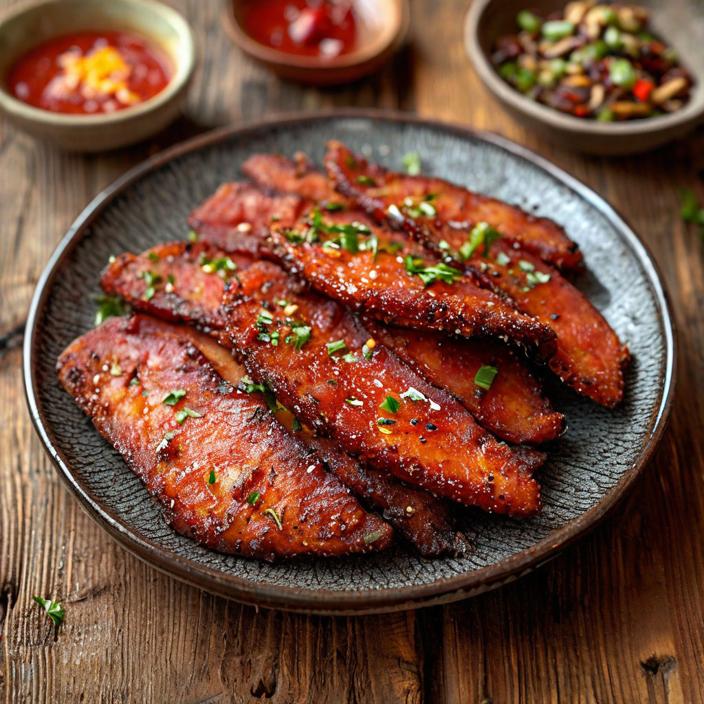 Окуните тонкие полоски мяса в маринад, накройте пищевой плёнкой и отправьте в холодильник минимум на 5 часов. - Приготовление:
